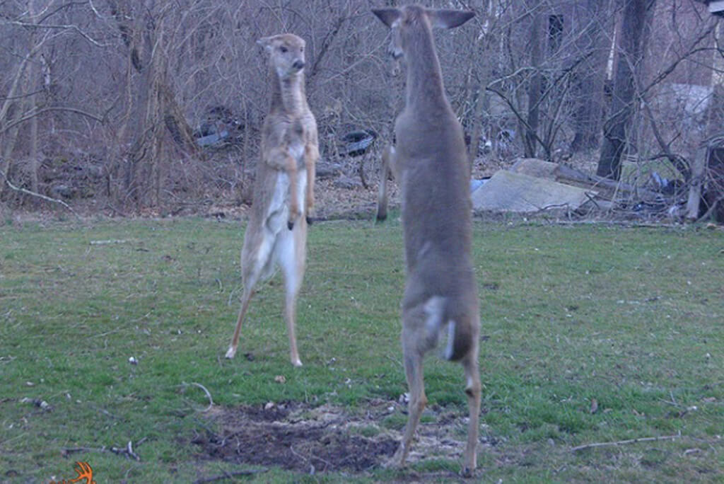 This picture makes you wonder what deer are really doing when they're alone in the wild. These trail cams are really giving us some insight into what animals are really up to in their natural habitat.