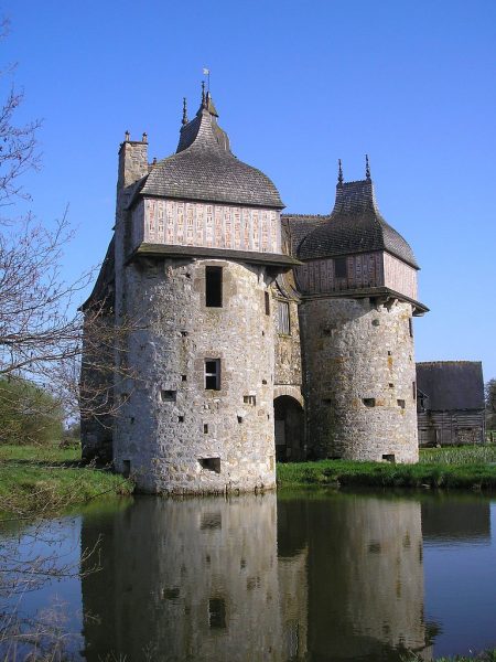 After the tumultuous time of the Hundred Years’ War from 1337 to 1453 between the House of Plantagenet, the rulers of England who claimed control of France, and the House of Valois of France, the towers and the moat were constructed. When the manor house was destroyed in the mid-1860s, the moats were filled in and the other buildings began to deteriorate leaving only the chateau which is constructed of sandstone, granite, and oak with chestnut roof shingles.