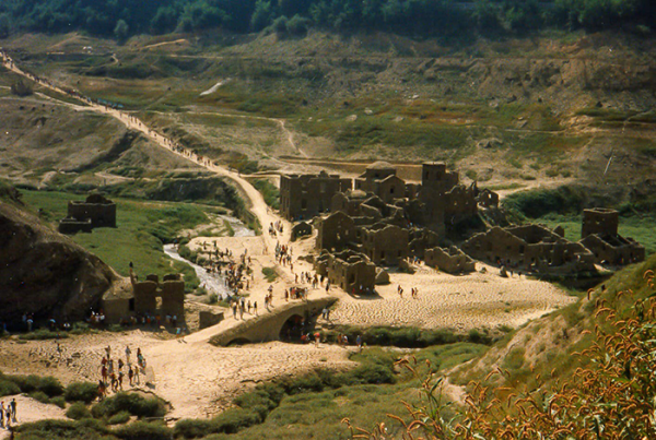 The town was built in 1270 and consists of stone houses, a Romanesque church and graveyard and a bridge which now goes nowhere.