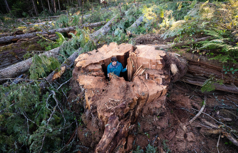 “This was a superlative ancient forest,” photographer and campaigner TJ Wyatt said in the release. “I was floored by the sheer number of monumental red cedars that had been cut down. It was the most shocking example of industrial old-growth logging I’ve witnessed since the logging in the Caycuse and Nahmint Valleys.