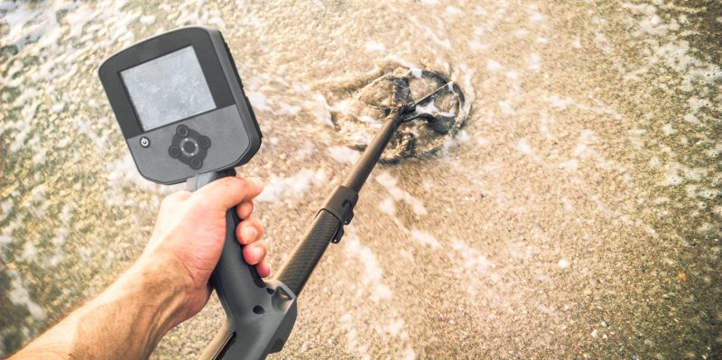Metal detectors work by sending an electrical current through a transmitter coil at the bottom of the unit. This creates a magnetic field as the electricity flows through it. As the detector passes over another metal object, the magnetic field creates a current flow in that object, which flows back up the unit into a receiving circuit. Here, the detector will make a buzz or beep to indicate the find to the user.
