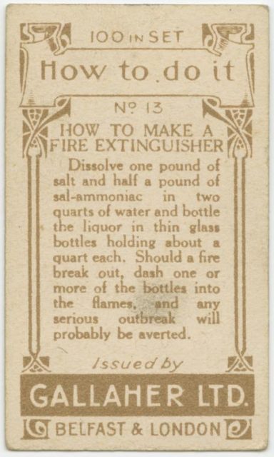 Gallagher’s Cigarettes made a special series of 100 cards that included “How to do it”, useful tips and tricks for everyday problems in the early 20th Century.