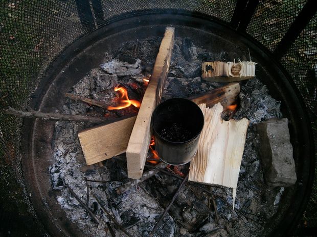 When your bark is depleted, you can begin to move away the fire and reclaim your quart container. I would recommend waiting 20-30 minutes for it to cool, however if you’re impatient, like I am, you can use a pair of pliers to grab it.