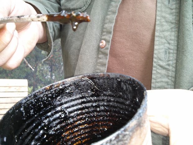 That’s it. It’s a tricky process, and requires a lot of supervision, but the end product is well worthwhile. Birch tar has almost endless applications and, in my mind, is one of the reasons that man is the successful hunter gatherer he/she is today.