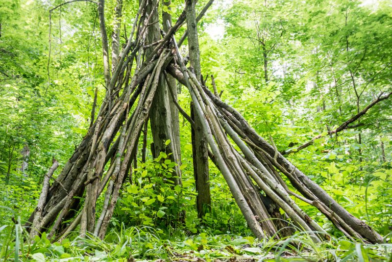 Building a shelter in the wild can be challenging. It has to be made of existing materials and has to be built quickly. This usually means building something out of tree branches as these are often the most readily available building materials.
