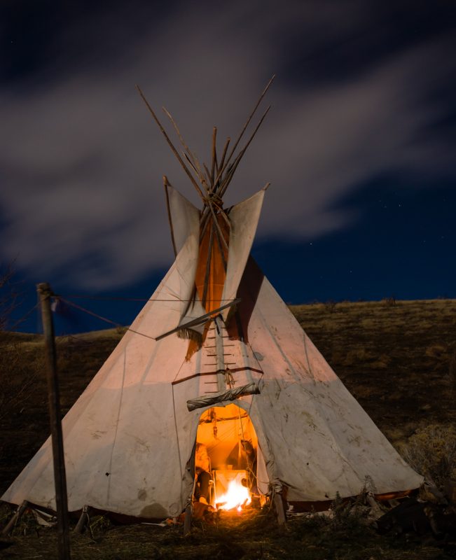 Compared to a modern tent, a teepee is a very inefficient structure – mostly due to the heavy tent poles. On the other hand, it is a sturdy structure that is not bothered much by the wind. It is also possible to build a fire in a teepee, which can’t be done with most modern tents.
