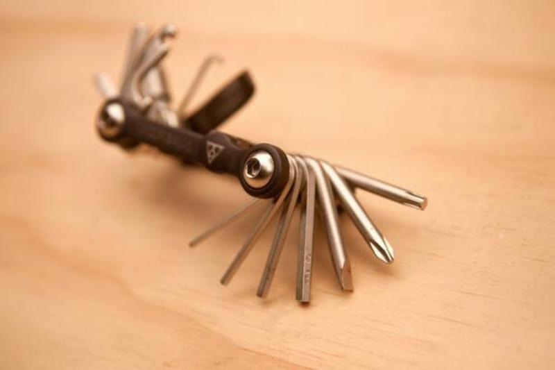 Hopefully, you'll have made any important adjustments before you leave, but it's important to be able to loosen and tighten hardware while you're out. Slipping seats, unsquare handle bars, loose reflectors or accessories, squeeky chainring bolts can all happen after a few minutes of riding, so it's important to be able to deal with them while you're out and about. Any good bike multitool works like a Swiss Army knife, and should include at least