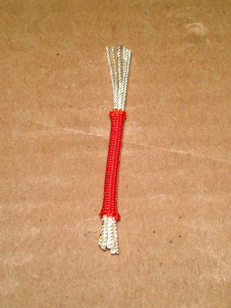 - Make sure the end of your paracord isn’t melted shut, and pull the inner strands, or guts, out about one inch.