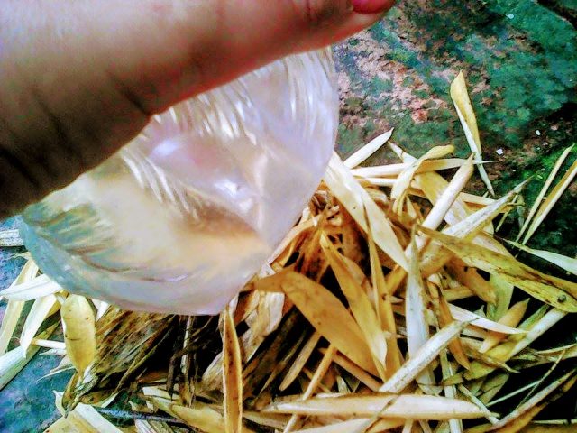 In a situation of no condoms and water, this is a good replacement. All you need to do is to fill a plastic bag with your urine and have enough sun. Just get the bag into a strong sunbeam and the tinder will catch fire after a while.