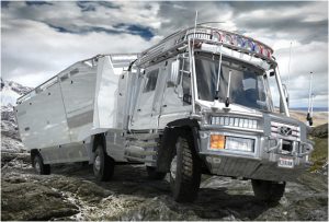 The spectacular adventure truck is composed by a modified Mercedes-Benz Unimog