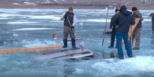 Siberians are the best at rescuing sinking vehicles in frozen lakes