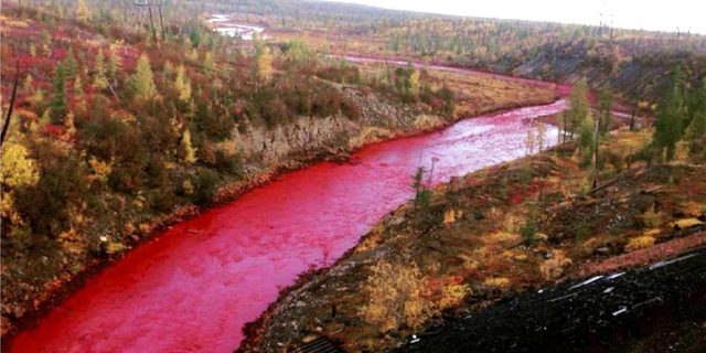 Man V. Nature: A Russian river turns red after an alleged chemical spill