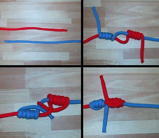 Secondly, there is the Square Knot also commonly known as a Reef Knot. This is the best knot to use when ropes need to be tied together. It can also be used when bandages need to be tied onto a wound. It is also the knot of choice in the case of tying bundles of items such as firewood together for ease of carrying.