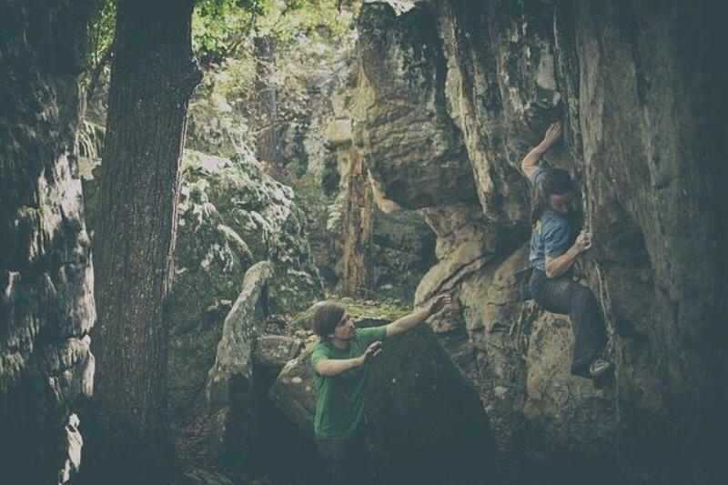 Then Mike fell, from the highest point on the route. He hit the rocks right below the roof first and then picked up speed as he slid down the near vertical face directly at me. He skipped off of two more protrusions in the rock before free falling the final ten feet.