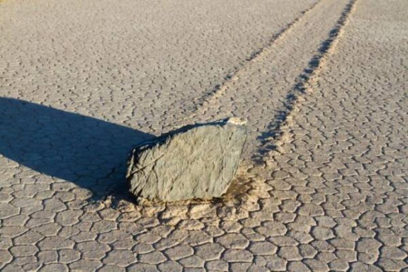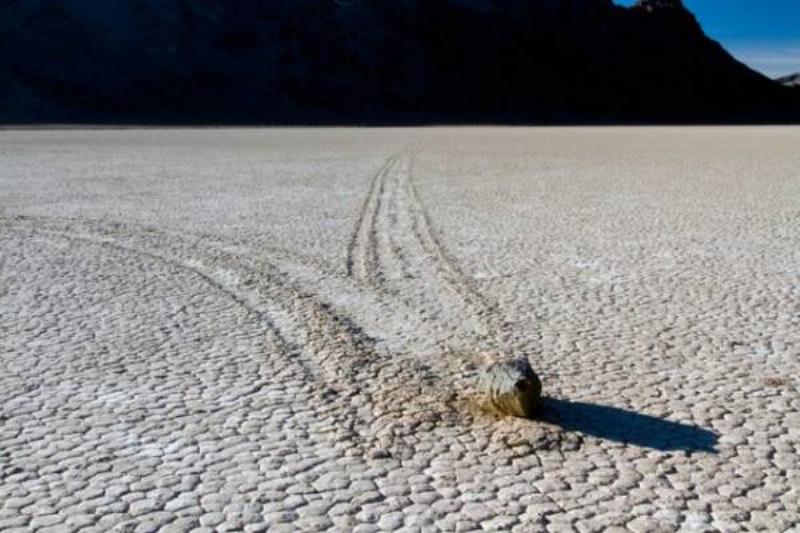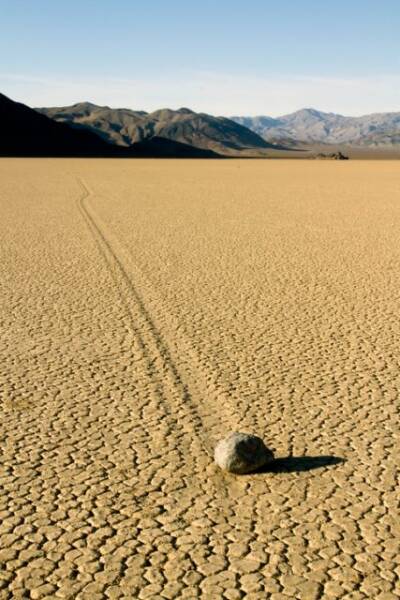Slithering rocks of Death Valley, sailing stones, gliding stones, wandering rocks, and moving rocks are just a few of the names for rocks that move mysteriously across the Death Valley desert with no obvious means of locomotion—no strong wind and nothing moving them.