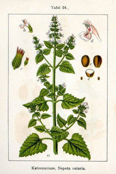 Catnip is actually a mint, part of the same family that includes basil and oregano. It contains compounds that scientists reckon are responsible for kitty's change in mood, particularly a substance called nepetalactone.