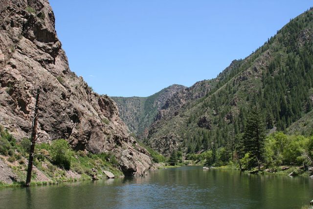 The lush banks along the Gunnison River, flowing through the bottom of the canyon. Photo Credit