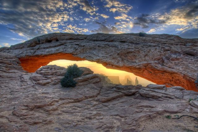 Mesa Arch as seen at sunset in the Island in the Sky district. Photo Credit