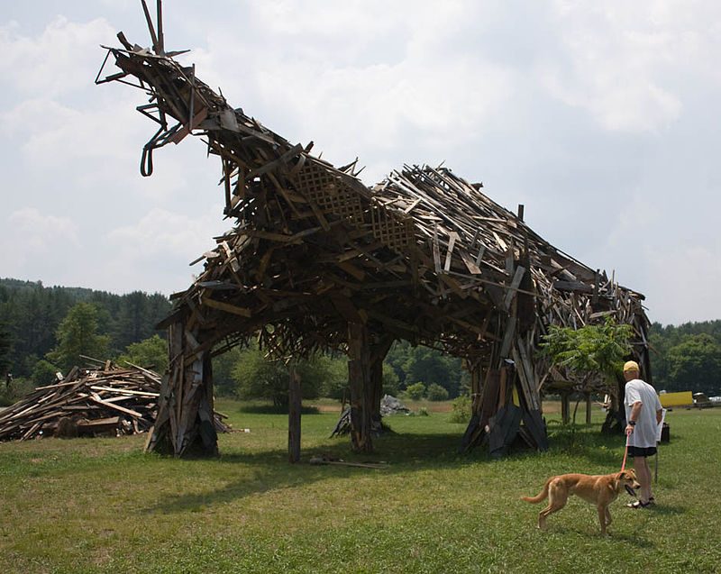 If you ever visit Vermont, you must go to Thetford and see the 25-foot high dinosaur sculpture made entirely of scrap wood. This recycled artwork attracts many tourists to take a photo and admire the wooden beast.