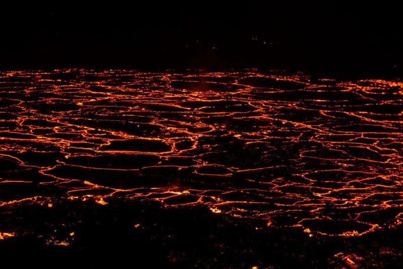 It’s hard to believe something so beautiful can be so dangerous – the patterns caused by the streams of lava have made for a truly mesmerizing sight for the drones flying overhead.