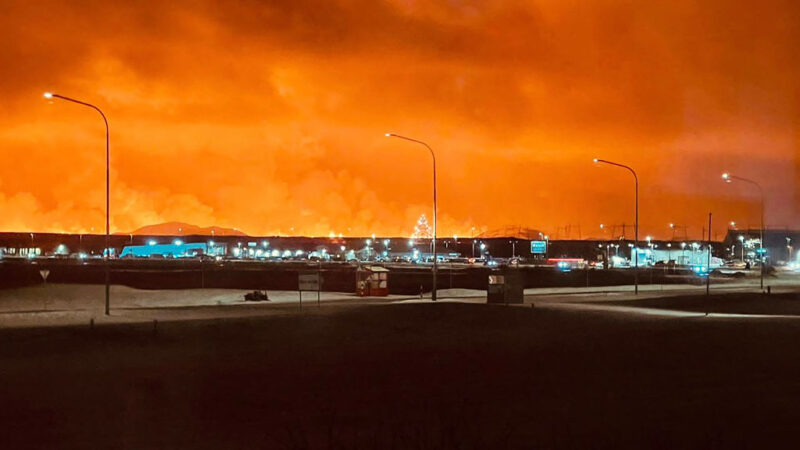 The effects of the eruption can be seen in areas away from Grindavik, as shown by this photo of the nearby town of Keflavik. Also located on the Reykjanes Peninsula, it’s no surprise residents are bearing witness to an eerie orange glow in the night sky.