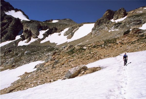 Grand Teton National Park originally consisted of the Grand Teton Range and six glacial lakes, but with time it grew to include the Jackson Hole Valley. The peak of Grand Teton is 13,775 feet tall and rises 7000 feet above Jackson Hole. The name of Grand Teton comes from the French-speaking trappers who called the mountain Les Trois tétons (the three teats). The park has many lakes, including the 15 mile long Jackson Lake, and countless streams, rivers, and glaciers in the higher parts.