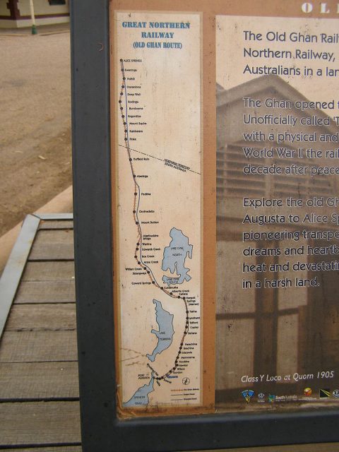 That is today known as the original route of the Ghan, or simply called the original Ghan whose last journey was in 1980.