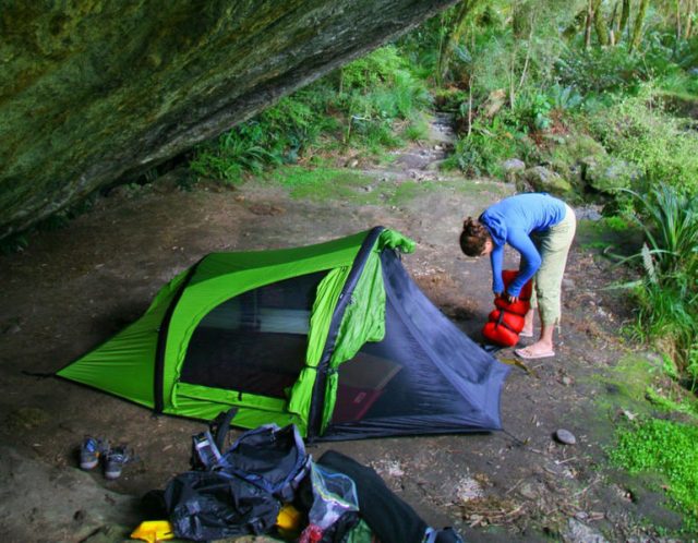 Likewise, be sure to not spread out too much. Although backpacking tents are rather small, it is easy to stay organized. Use the overhead storage and side pockets (share!) to make sure everything has a place and stays in it.