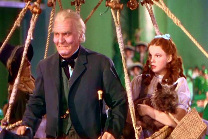Hot air ballooning makes a number of appearances through the movie, both in Kansas and with the Wizard of Oz. In Oz, it will carry her back home, but she's forced to abandon that hope. She must choose between going home or being with her sidekick (and ever-faithful dog) Toto, when he runs after a cat.