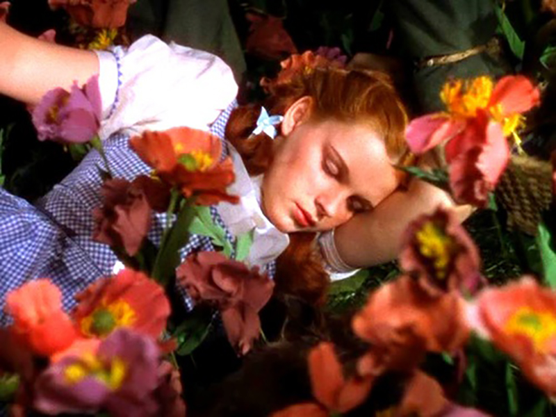 One of the most controversial scenes in the movie and the book involves the Poppy fields, where Dorothy is doped, along with Toto and the Cowardly Lion. From the perspective of Jungian philosophy, you may have noticed the "dream within the dream," since Dorothy is really (supposedly) in a delirious dream-like state, brought on by the Kansas tornado. Yep, she's got a concussion, but it's also ironic on multiple levels. The poppies were "poisonous" meaning that they would have died if they had stayed in the fields.