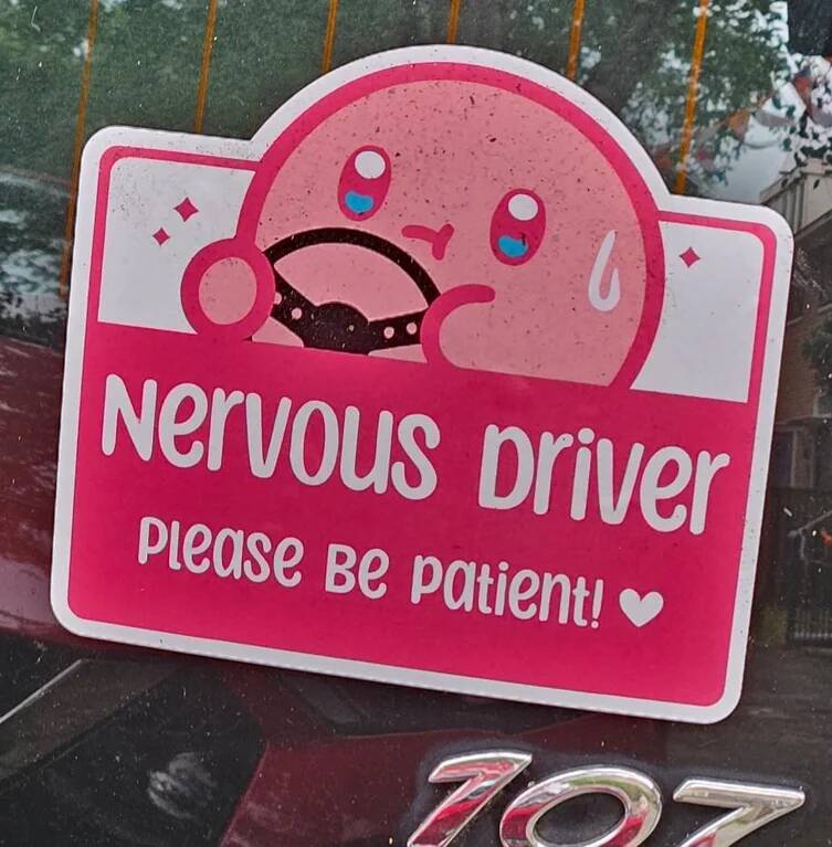 Some bumper stickers warn that the driver is new and inexperienced. Others, like this one, simply offer a heads-up that while the driver might not be a newbie, they're very nervous.