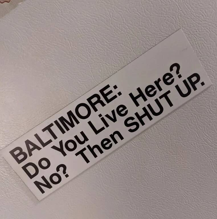 I'm not going to pretend I know the folkways of Baltimore (I mean, I did watch The Wire start to finish). So with that lack of knowledge, I'm just going to assume this makes sense to you if you're in Baltimore.