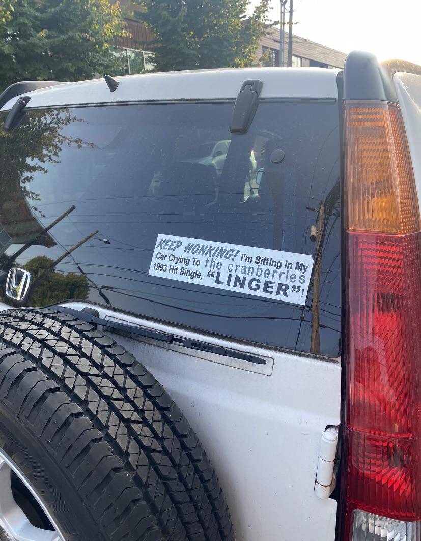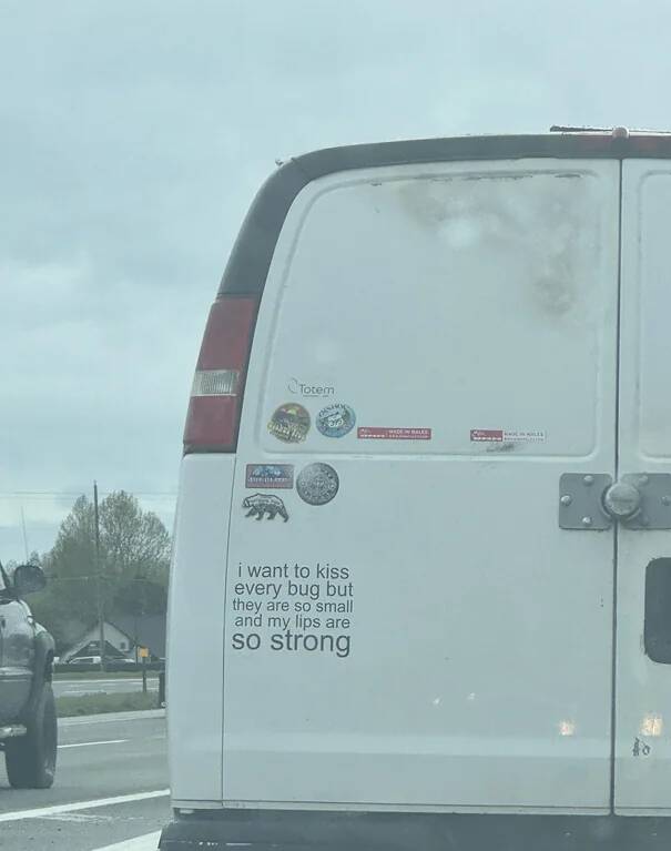 Some drivers stick to one message with their bumper stickers, while others seem determined to slap as many stickers onto their cars as possible. I think we all know which category this driver falls into.